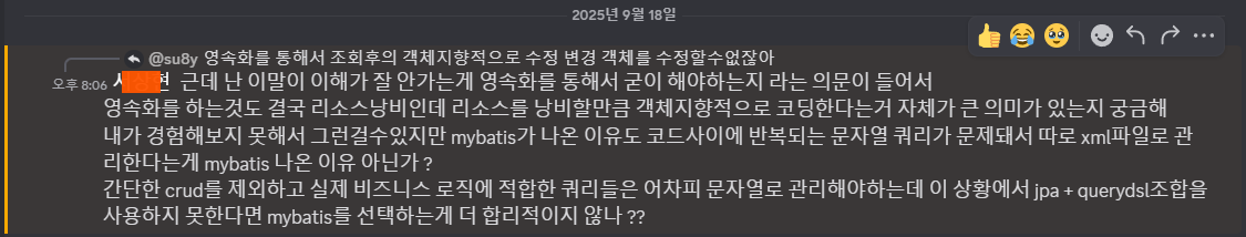 이 질문은 굉장히 합리적으로 보인다. 동시에, JPA를 바라보는 관점이 살짝 어긋나 있다는 신호이기도 하다.