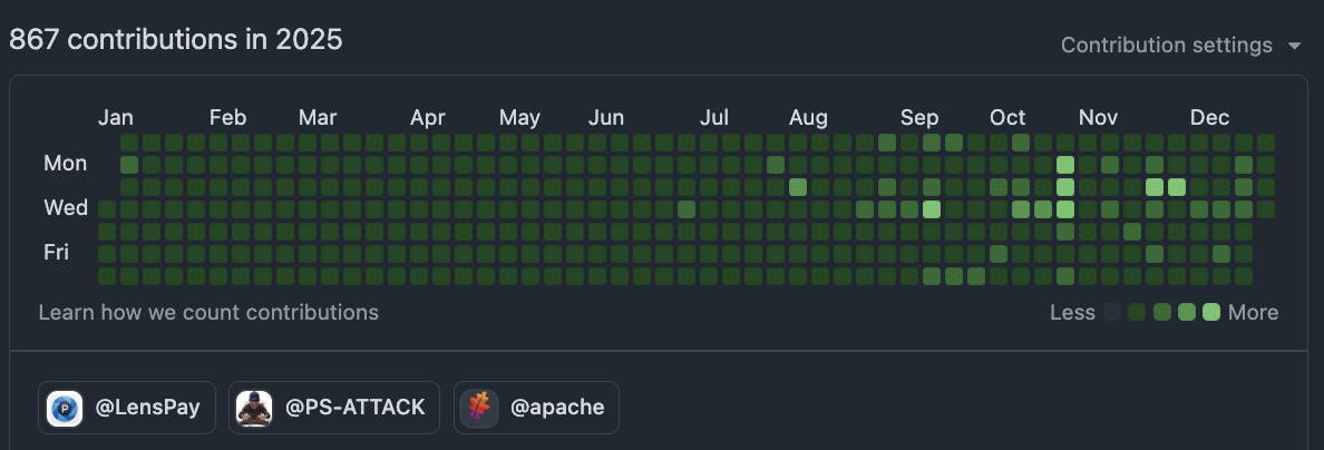 2025년 12월 31일, 올해의 마지막 커밋을 푸시하고 깃허브 프로필을 새로고침했습니다. 2년 치의 초록색 타일들이 빈틈없이 빽빽하게 채워져 있더군요.