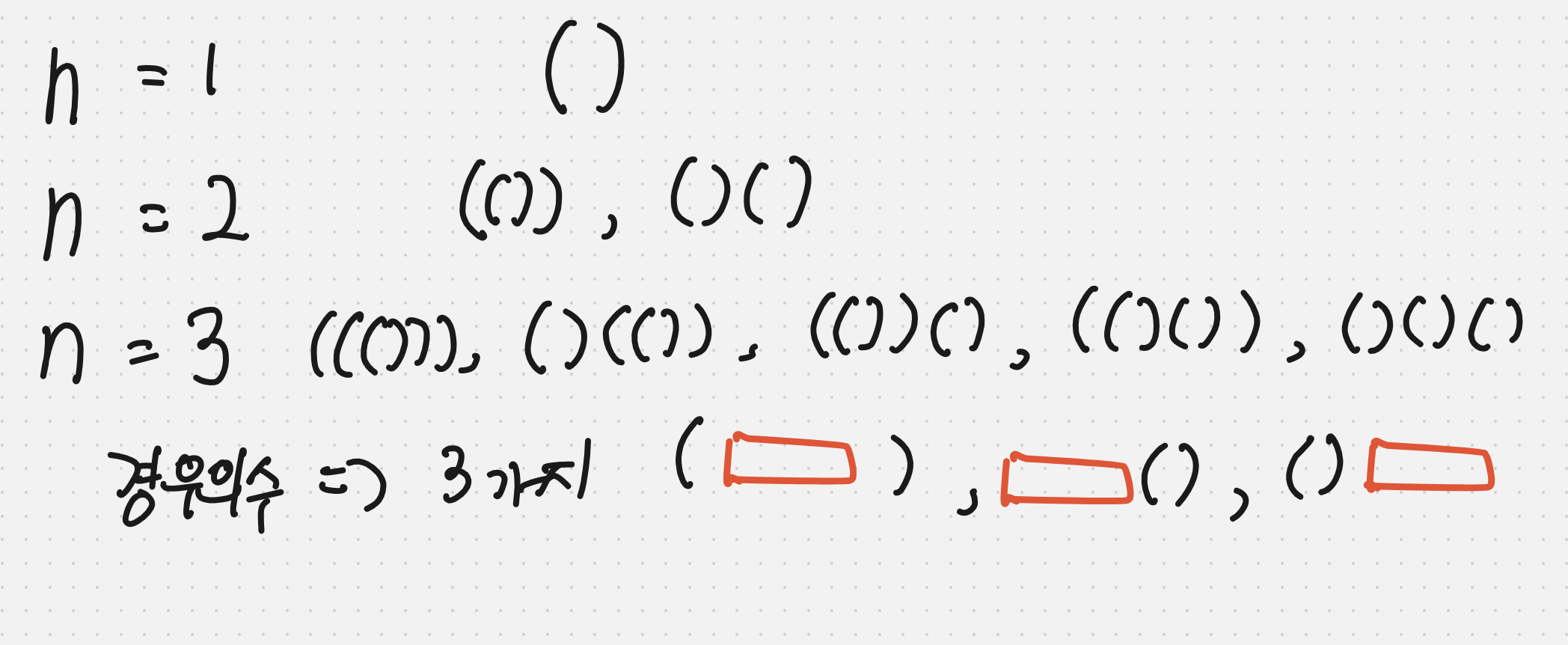 그리고 기저사례로는 "(" 와 ")"의 수가 둘다 n 이어야한다.